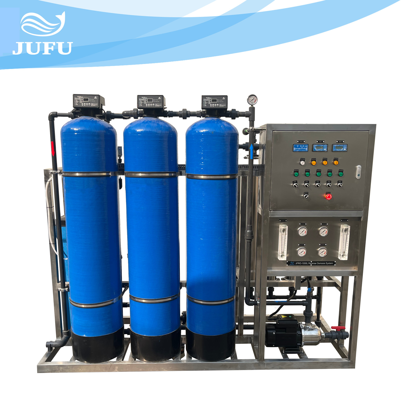 Oryginalna pompa wody → filtr mechaniczny (filtr z piaskiem kwarcowym) → filtr z węglem aktywnym → jonit sodowy (zmiękczacz wody) → filtr bezpieczeństwa → pompa wysokiego ciśnienia → odwrócona osmoza → sterylizator ozonowy (sterylizator ultrafioletowy)
